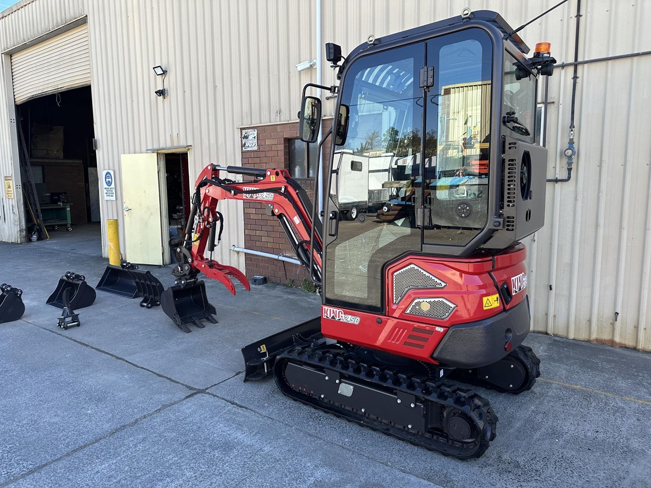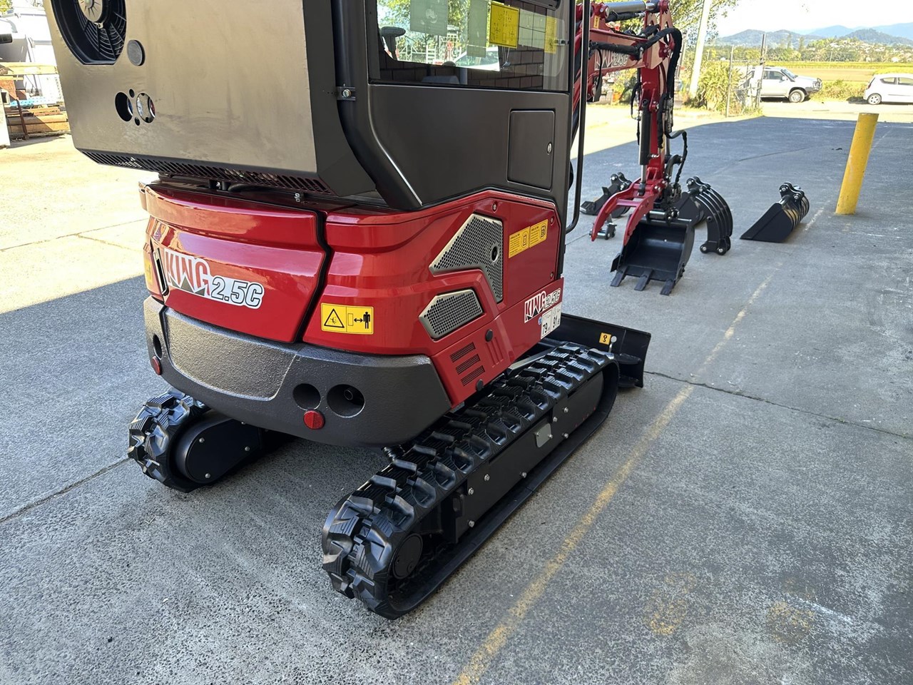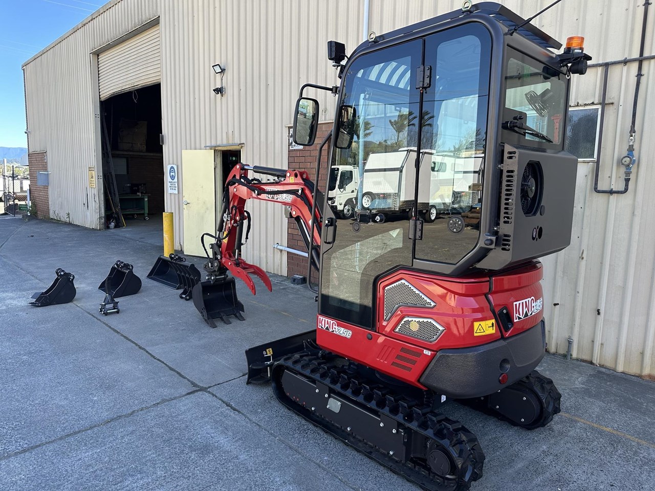 2.5c excavator with enclosed cab, reverse cycle air conditioning, retractable tracks and swing boom $41,990+GST or around $209 per week on finance 2.5 ton excavator with smooth 3 cylinder 19hp Kubota diesel engine - 1025mm wide - 350kg load capacity Attachments included in the package: - 1000mm bucket - 600mm batter bucket - 400mm standard bucket with teeth - 200mm narrow bucket with teeth - Hydraulic thumb - Claw - Ripper - Hydraulic quick hitch Heavy duty trailer package: $48,990+GST or around $249 per week on finance - Super Duty Trailer with 4 wheel electric brakes and easy fold down ramps - Implement rack - Tie down straps - All set up for you turnkey - Add an optional auger for $4990 + GST Full details