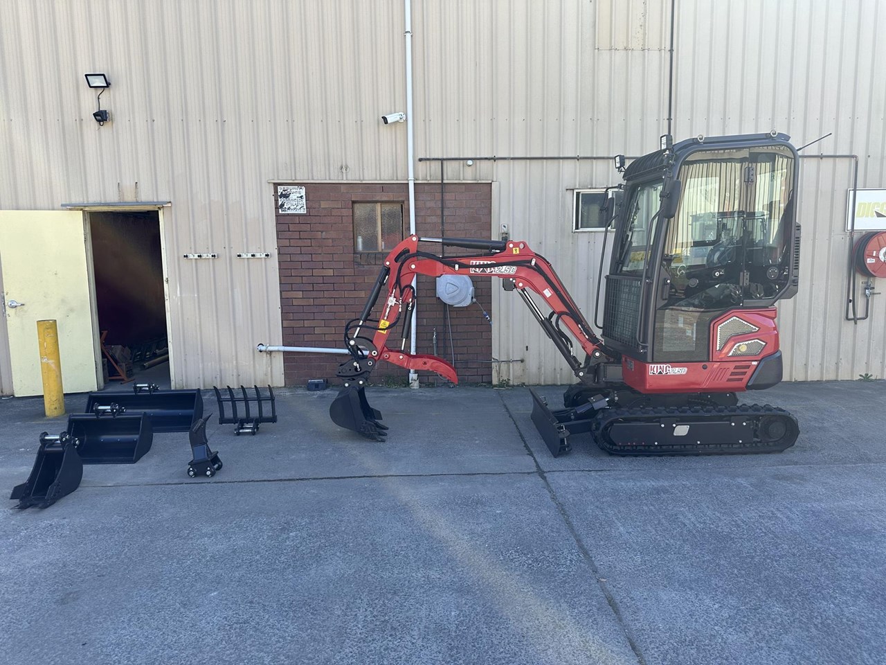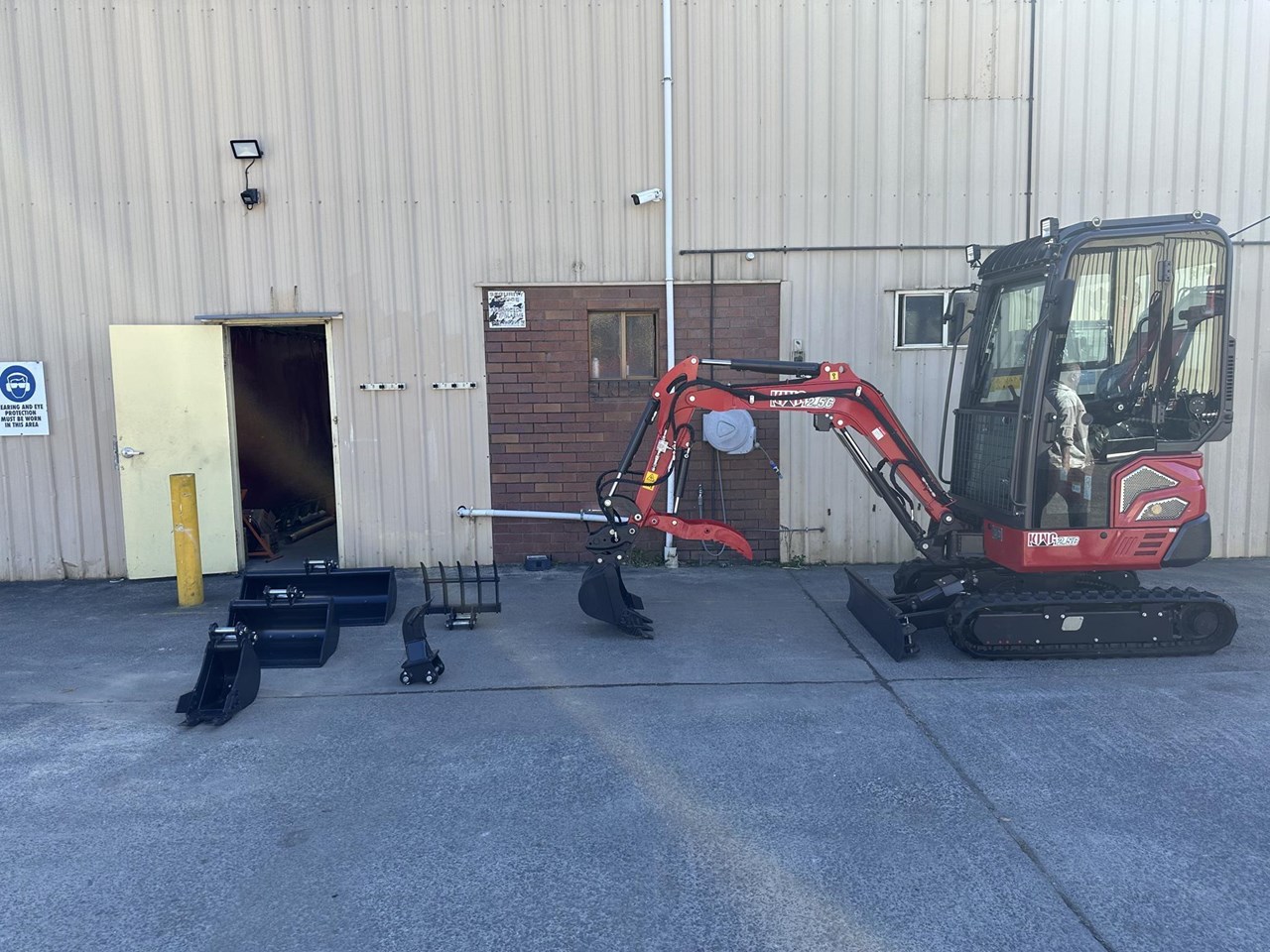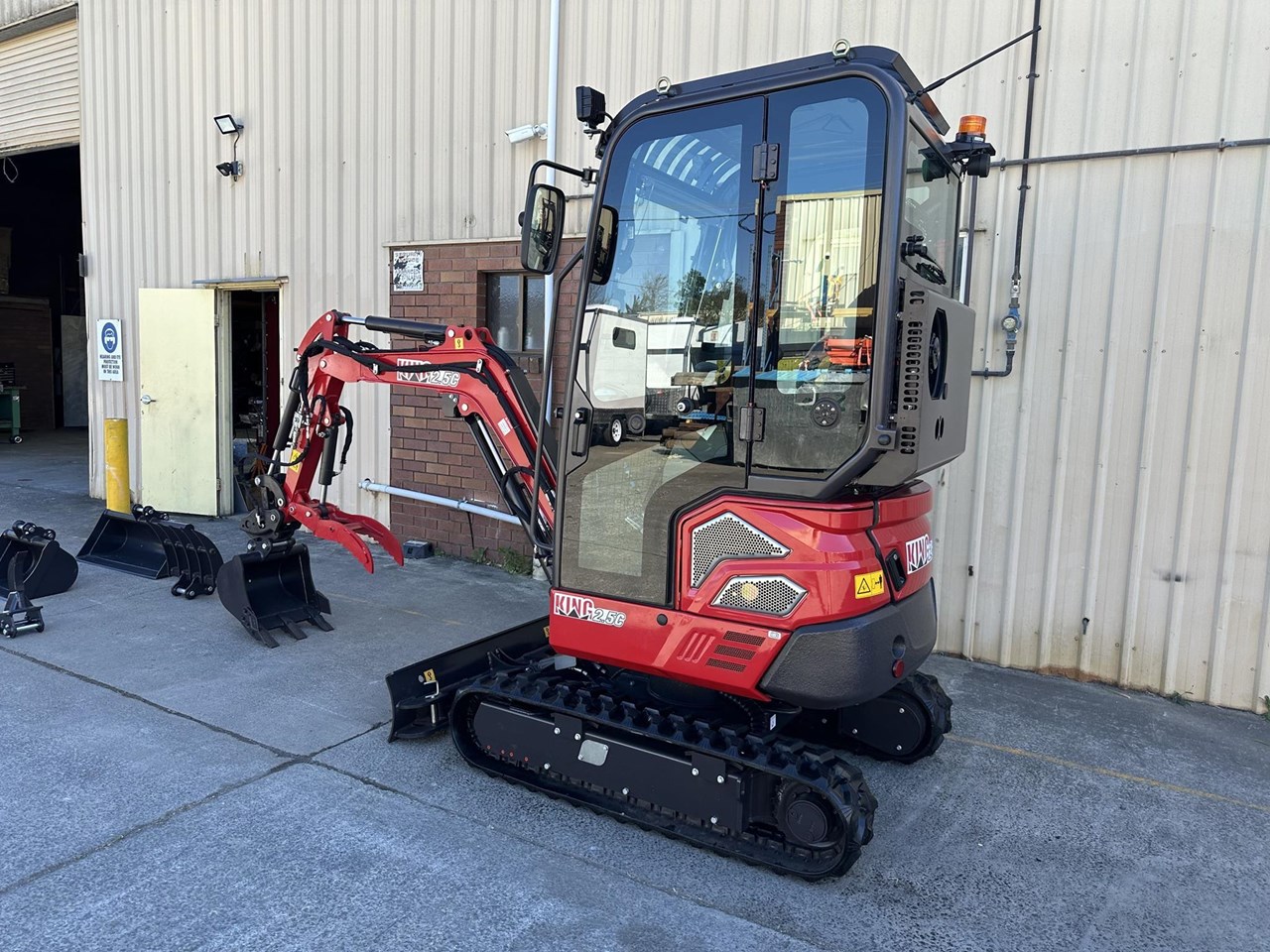2.5c excavator with enclosed cab, reverse cycle air conditioning, retractable tracks and swing boom $41,990+GST or around $209 per week on finance 2.5 ton excavator with smooth 3 cylinder 19hp Kubota diesel engine - 1025mm wide - 350kg load capacity Attachments included in the package: - 1000mm bucket - 600mm batter bucket - 400mm standard bucket with teeth - 200mm narrow bucket with teeth - Hydraulic thumb - Claw - Ripper - Hydraulic quick hitch Heavy duty trailer package: $48,990+GST or around $249 per week on finance - Super Duty Trailer with 4 wheel electric brakes and easy fold down ramps - Implement rack - Tie down straps - All set up for you turnkey - Add an optional auger for $4990 + GST Full details