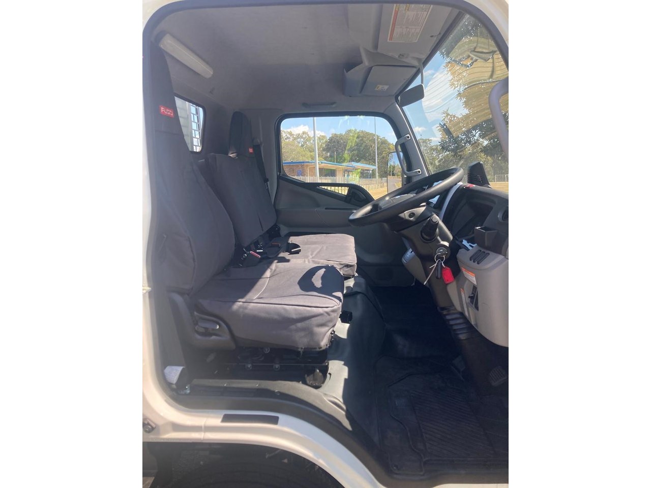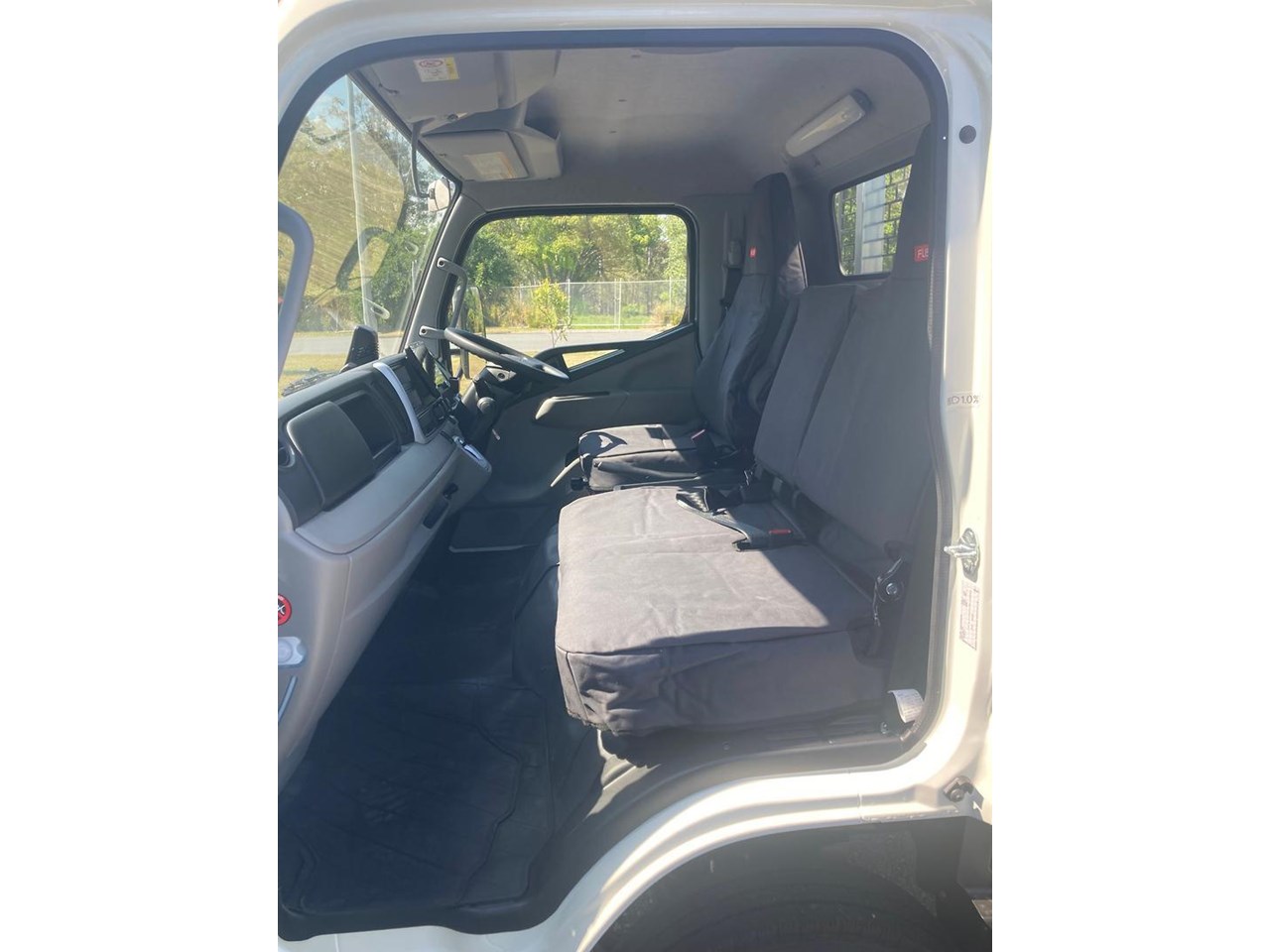 2025 CANTER 515 WIDE CAB 4X2 MWB 6SP. DUONIC TRANSMISSION FITTED WITH 4500mm X 2100mm X 300mm (H) SPLIT DROPSIDES, CENTRE & REAR REMOVABLE LADDER RACKS AND 3.5T RATED TOWBAR WITH 50mm BALL, CANVAS SEAT COVERS, RUBBER FLOOR MATS.