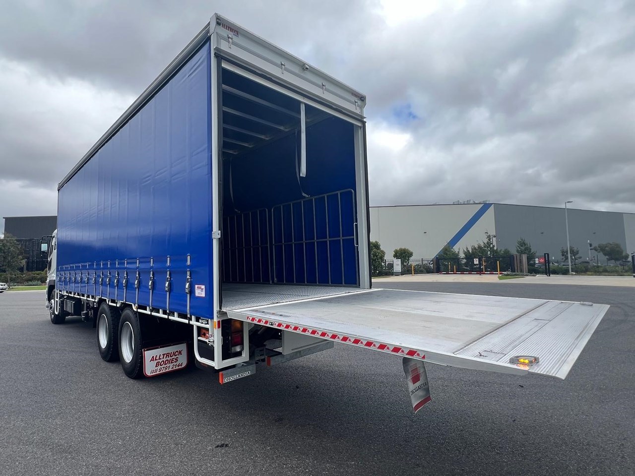 - Curtains: Blue lightning latch curtains for easy and secure loading