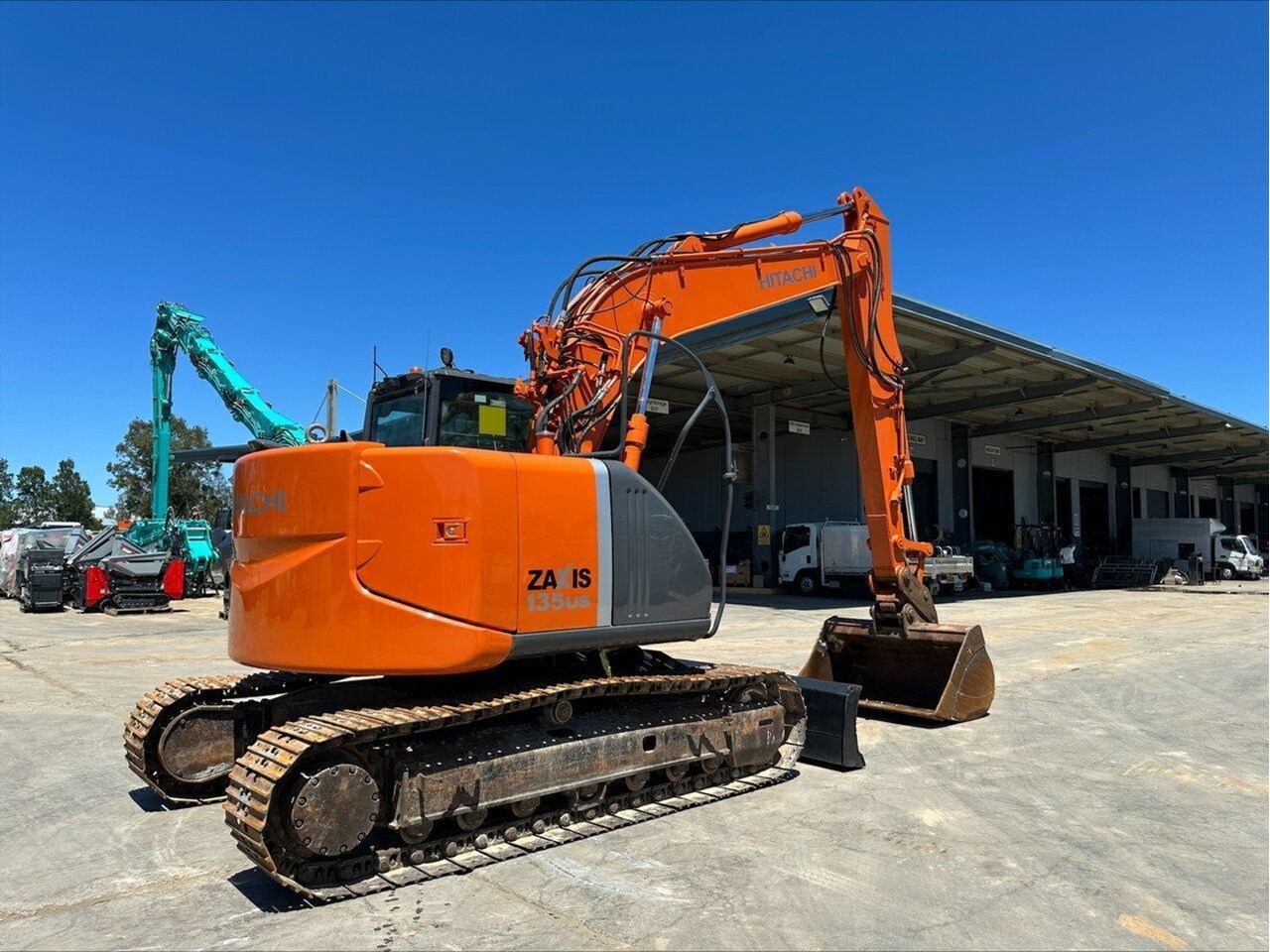 2010 Hitachi ZX135US-3 ZX Orange Excavator 0.0l - Fitted With: Fully Enclosed Air Con Cab, Steel Tracks, Leveling Blade, Rotating Beacon, internal E-Stop, Hydraulic Quick Hitch, Mud Bucket, 9220hrs on Machine,