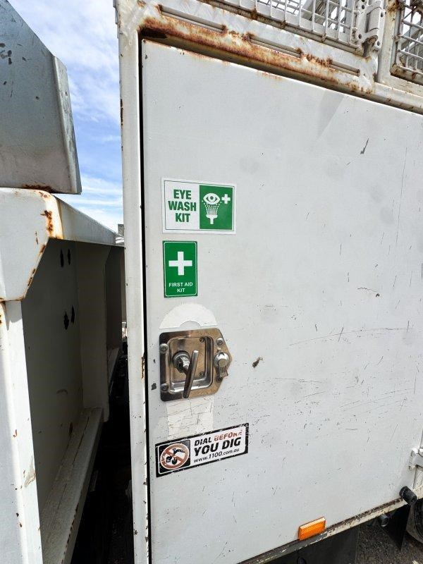Tool locker behind cab with mesh-top cage