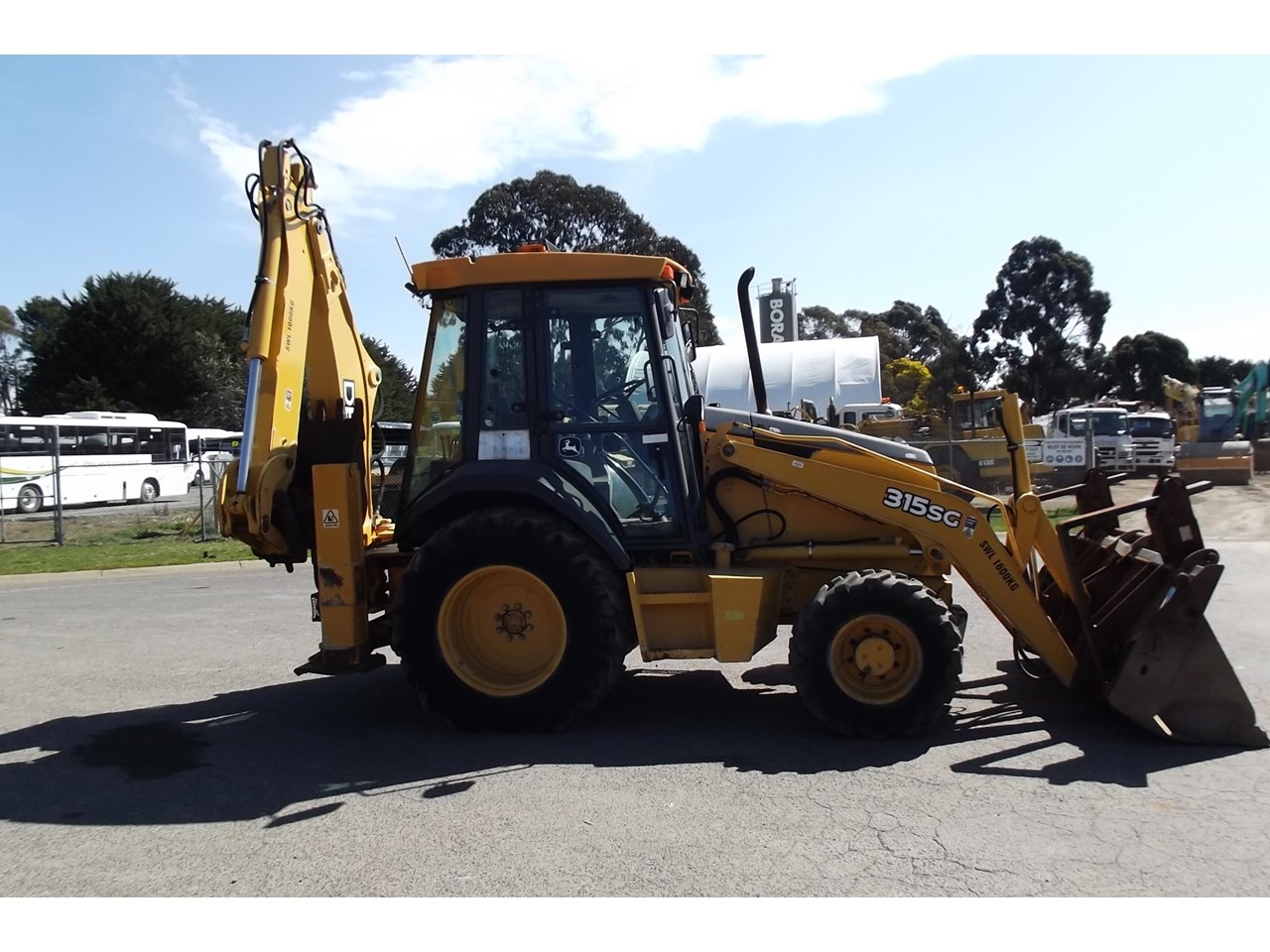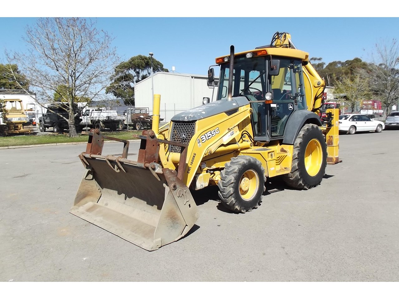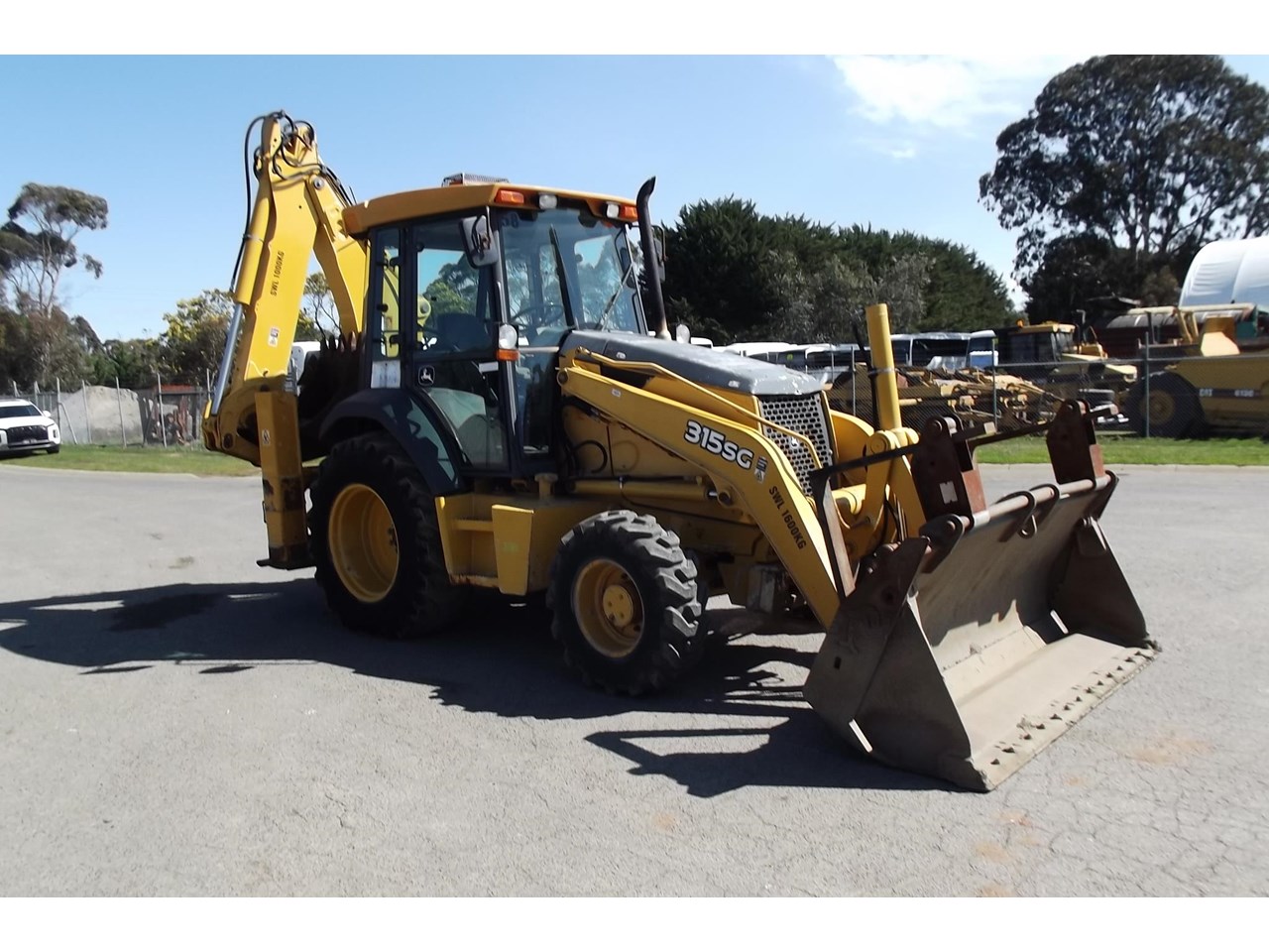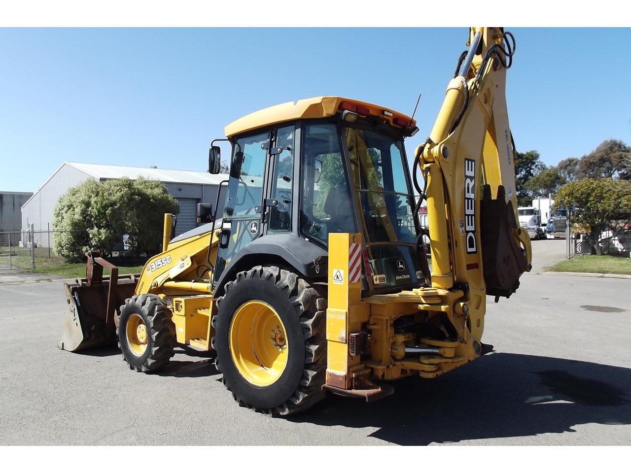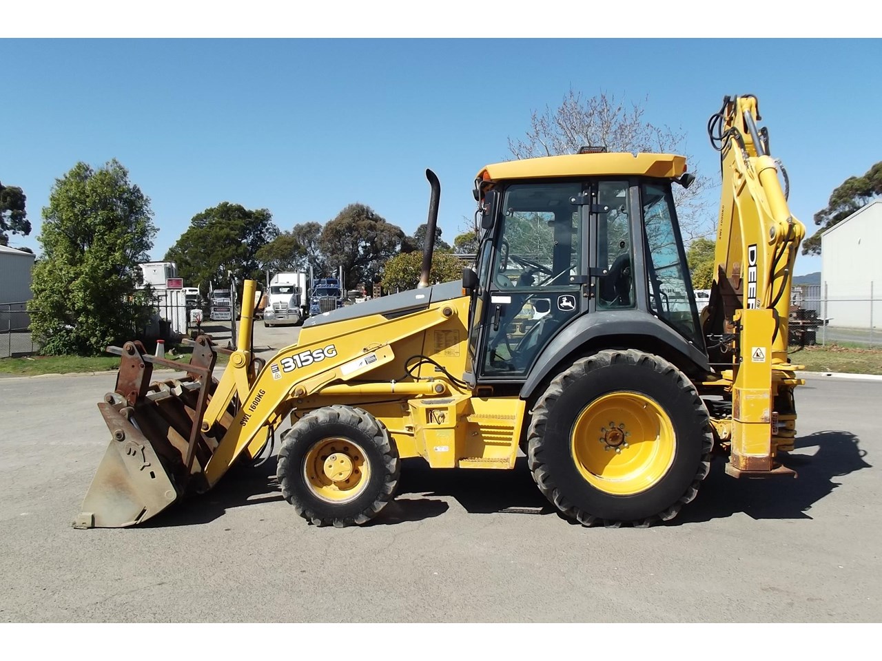 John Deere 315SG 4x4 Loader Backhoe 2004 model powered by JD 4054T 4 Cyl Turbo @ 80HP, 4F/4R power shift transmission, Enclosed R.O.P.S cabin with heater A/C radio, air suspension seat & ride control, Multi-Purpose loader bucket with BOE, side shift extender hoe c/w manual quick hitch & 1 GP hoe bucket.$40,000 Plus GST