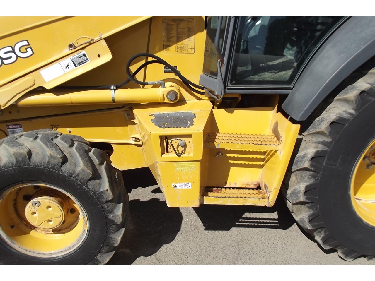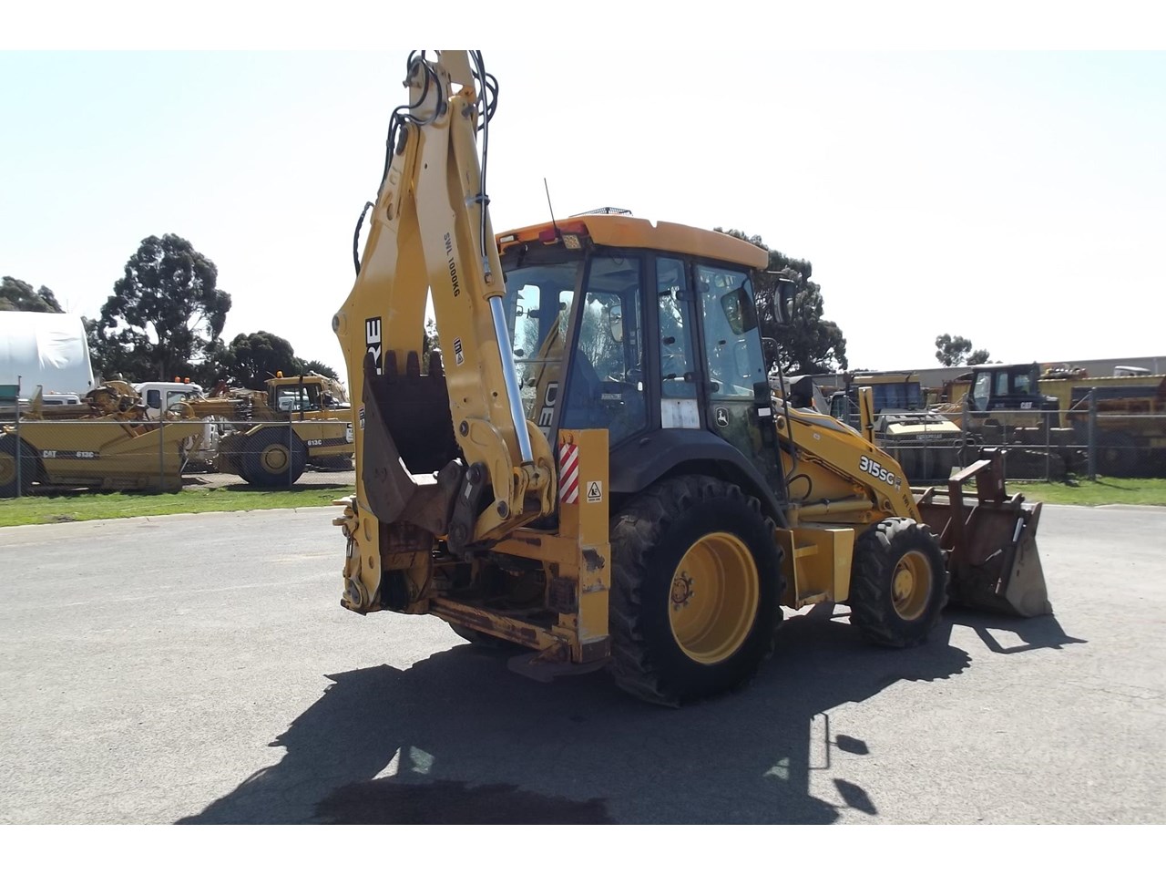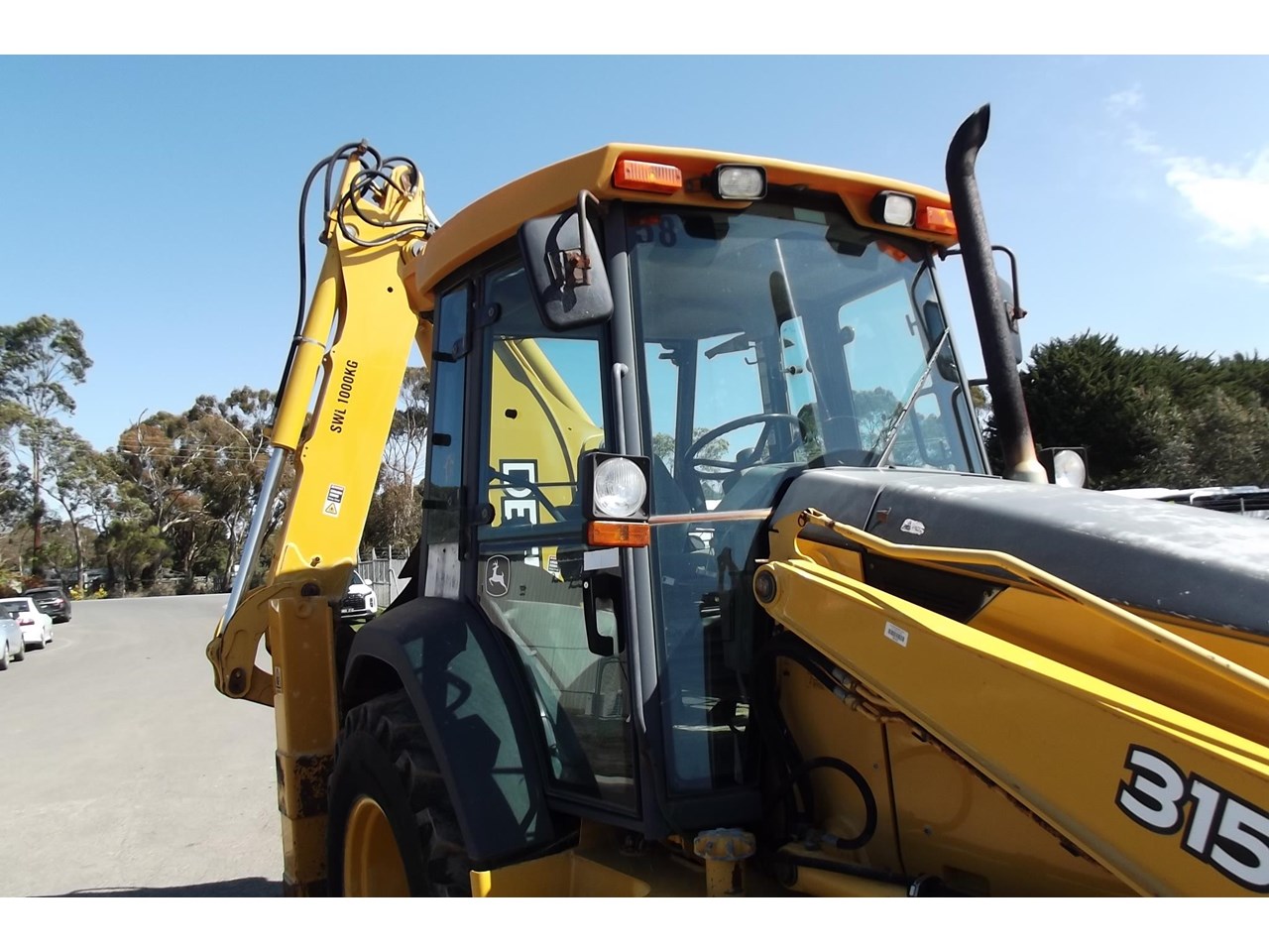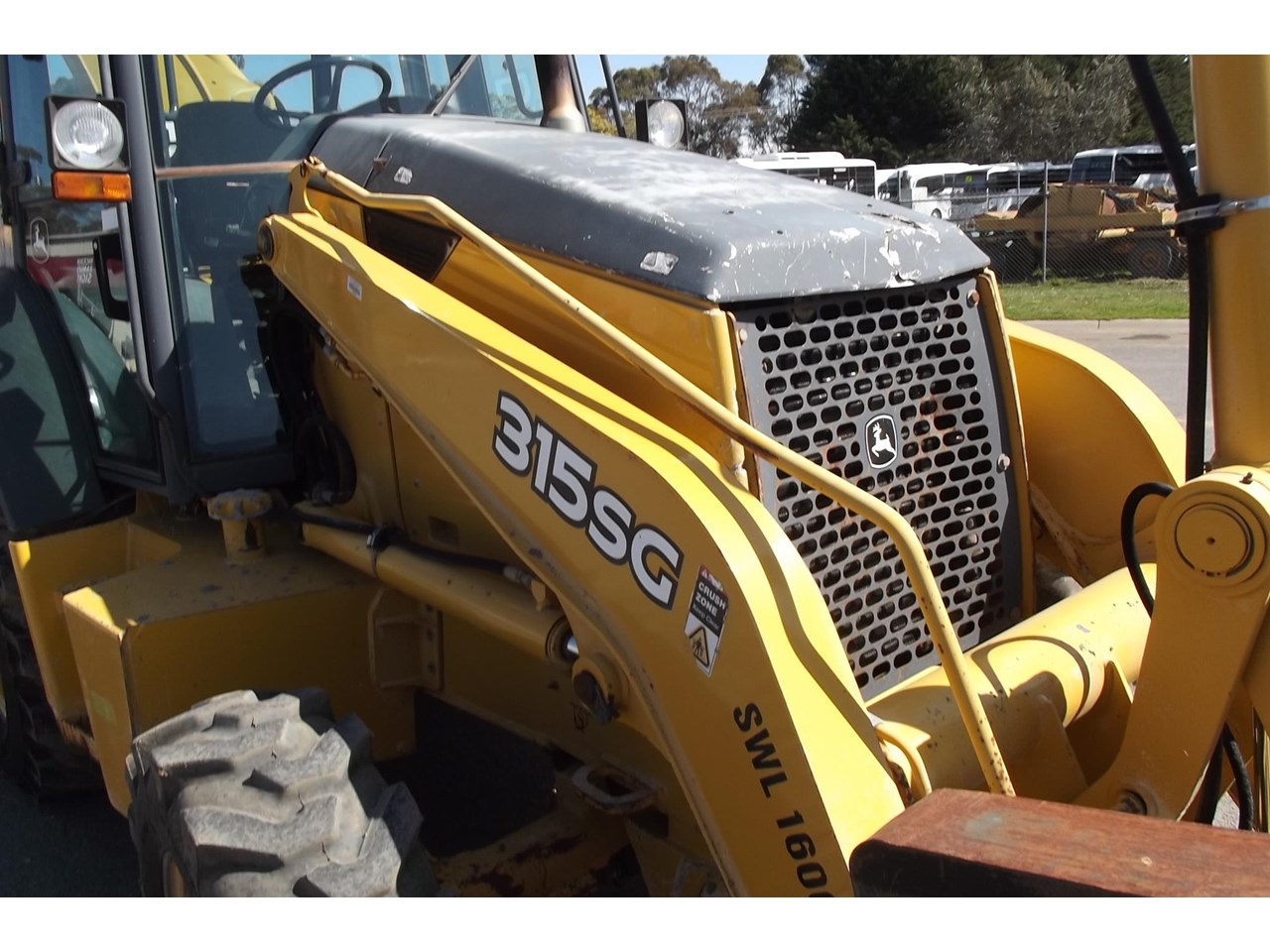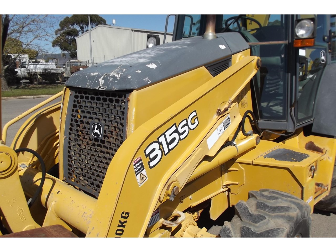 John Deere 315SG 4x4 Loader Backhoe 2004 model powered by JD 4054T 4 Cyl Turbo @ 80HP, 4F/4R power shift transmission, Enclosed R.O.P.S cabin with heater A/C radio, air suspension seat & ride control, Multi-Purpose loader bucket with BOE, side shift extender hoe c/w manual quick hitch & 1 GP hoe bucket.$40,000 Plus GST
