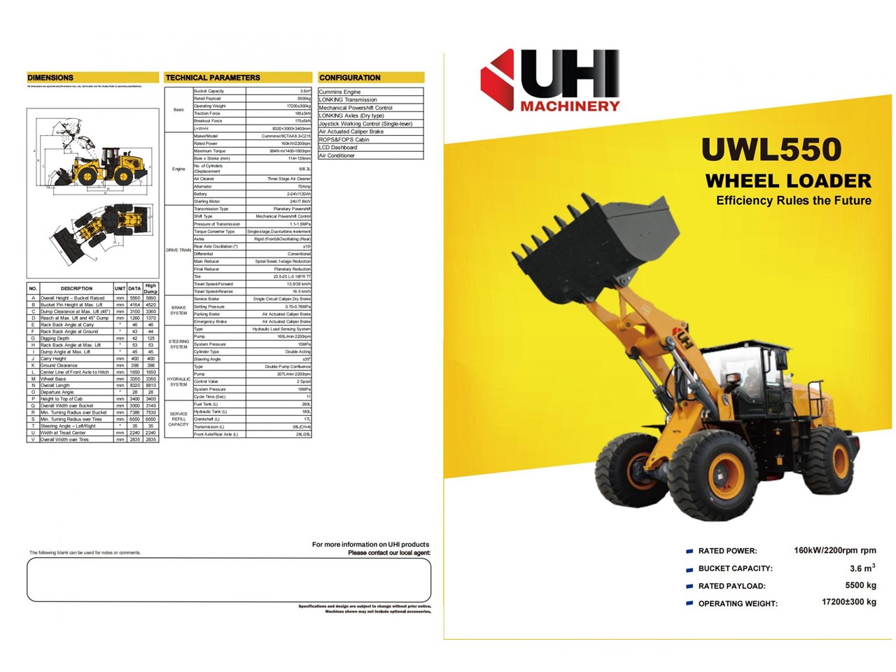 215HP Cummins UWL550 5.5T Rated Load Wheel Loader