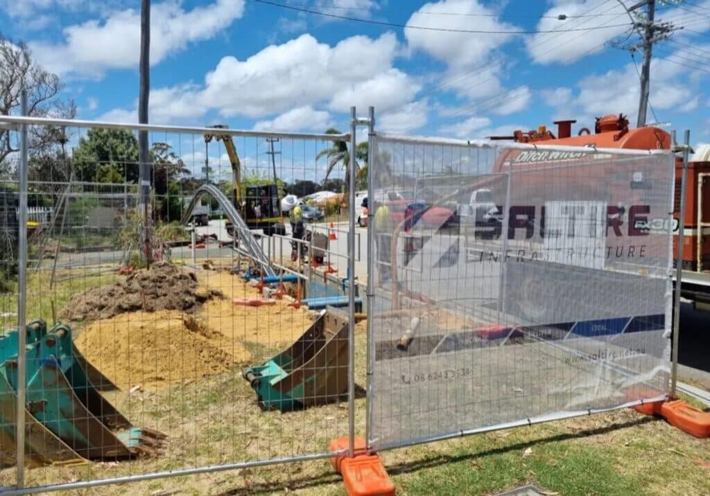 Water Corporation engaged Saltire to modify the existing design and construct a 288-metre DN355 PN20 HSCR PE100 pipeline, extending the pressure main to an existing gravity section at a more suitable discharge location. The sewer pressure main extension was designed to remove the odour source while maintaining network integrity and operational continuity.